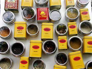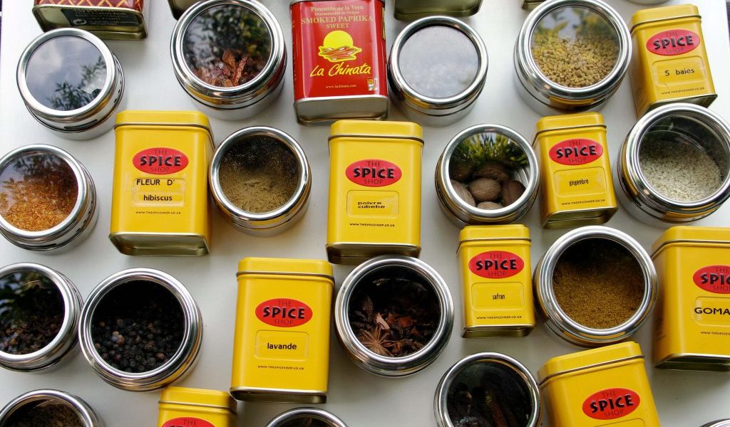 la cardamome, le poivre long, le gomasio, le réglisse en poudre, la cannelle, le cumin (entier et moulu également, bien sûr), la lavande, la muscade, les 5 baies, l’anis étoilée, le safran, le sumac, le piment d’espelette, la coriande, les graines de moutarde, le gingembre, le poivre cubèbe, le poivre de séchuan, le piment, le paprika (fumé), le curry, le garam masala, l’agar agar, le genièvre, les clous de girofle, le sésame, le pavot, le cucurma, l’anis vert, la fève tonka, le sel de céleri, le piment….