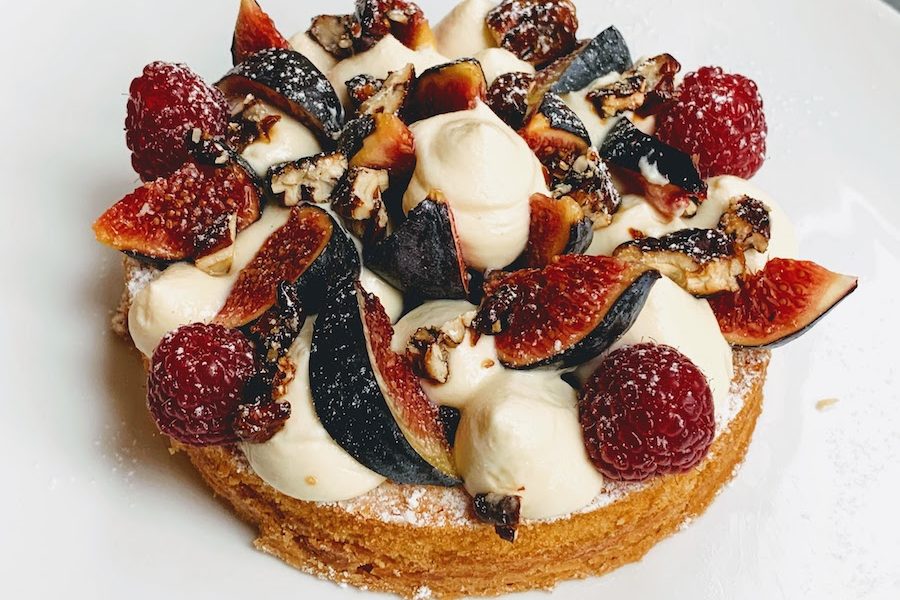 La figue est suffisamment rare, pour en faire quelque chose de noble, ici, on la garde fraîche et crue pour sa douceur. La framboise apporte une petite touche d’acidité et donc, de peps à l’ensemble. Une tarte à préparer sur 2 jours pour plus de facilité, mais ne partez pas en courant ! rien de bien compliqué, c’est promis ! Ce dessert est composé de bas en haut :