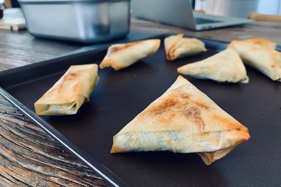 Voici donc des feuilles de bricks aux épinards et à la fêta, à faire en miniature avec pliage, pour apéro ou entrée ou bien en version tourte si on ne veut pas jouer !