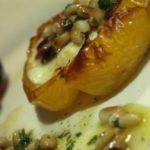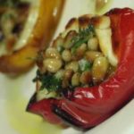 J’aime beaucoup relire mes vieux magazines quand je suis dans le métro, on découvre les recettes avec un oeil nouveau. C’est ainsi que ces demi-poivrons ont atterri dans nos assiettes, après que j’ai relu le « Olive » (magazine anglais) de juilet 2007. Une entrée simple et justement assaisonnée (même si je n’avais pas de petit piment rouge ! J’ai mis un peu de tabasco dans l’assaisonnement).